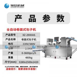 290IIAS卷面式包子機,可生產各種不同餡料的包子、各式包餡食品,如豆沙包、南瓜餅、肉包、小籠包、水晶包等幾十種包餡制品。適用于個體戶、食品廠、學校等單位食堂。可滿足不同客戶群體。免費提供工藝技術。