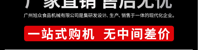 廣州旭眾食品機械有限公司是一家集科研開發,生產設計,營銷服務為一體的現代化生產企業。現代化生產車間,精湛制造技術,所產機械歷經市場重重考驗,不斷贏得海內外客戶的贊譽。