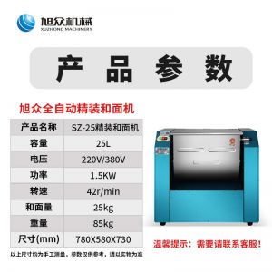 SZ-25精裝和面機,全自動和面,電動精裝和面機仿手工和面/快速均勻/面團勁道。有了旭眾精裝和面機讓你輕松和面,告別效率低下的手工和面和面快速,無需過多等待,省力省時省人工。