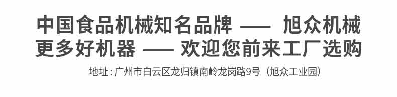 廣州旭眾食品機械有限公司是一家集科研開發,生產設計,營銷服務為一體的現代化生產企業?,F代化生產車間,精湛制造技術,所產機械歷經市場重重考驗,不斷贏得海內外客戶的贊譽。