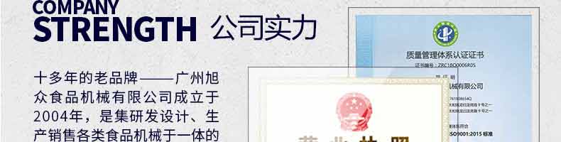 廣州旭眾食品機械有限公司是一家集科研開發,生產設計,營銷服務為一體的現代化生產企業?,F代化生產車間,精湛制造技術,所產機械歷經市場重重考驗,不斷贏得海內外客戶的贊譽。